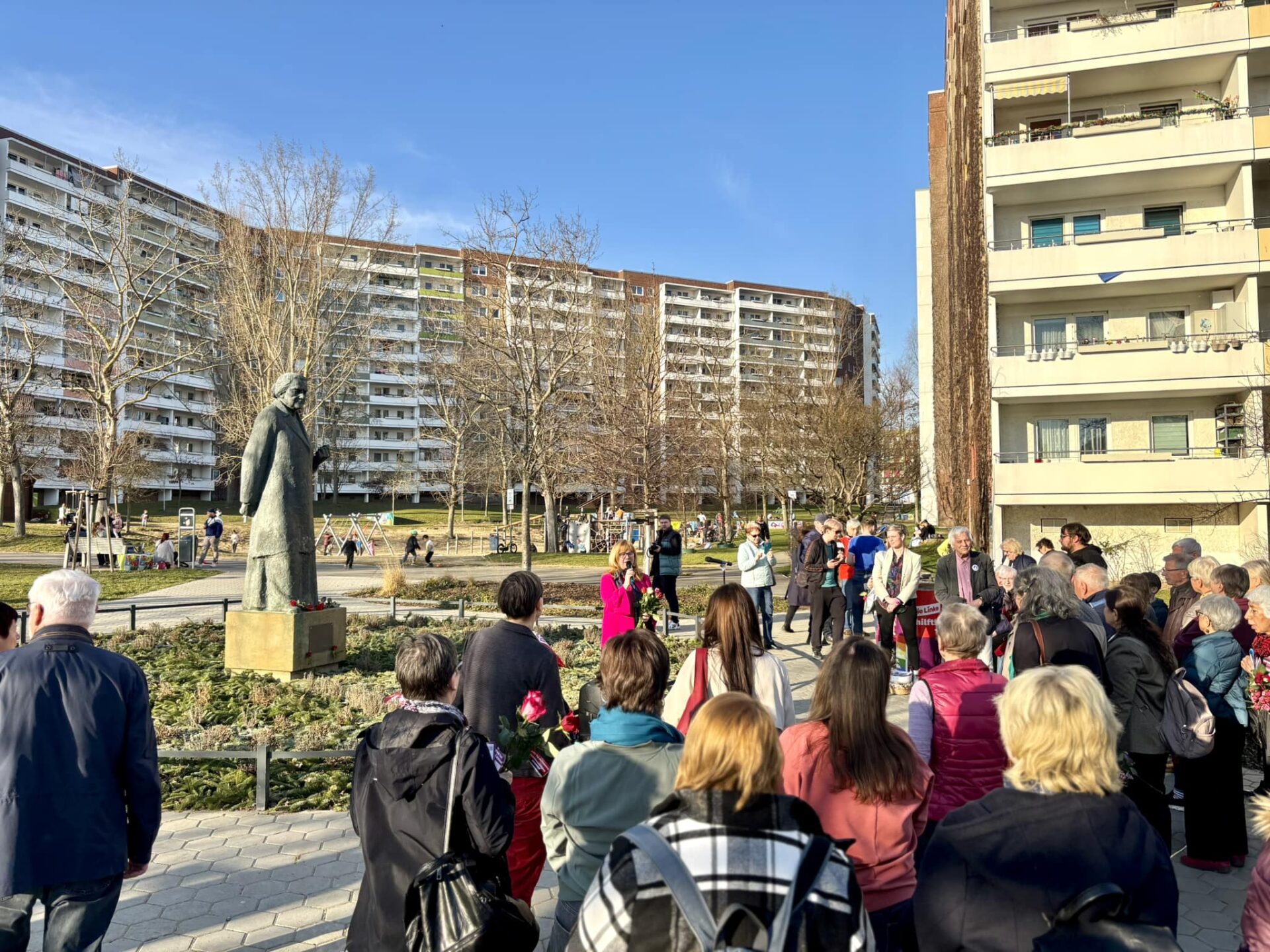 Heute haben wir gemeinsam mit dem FrauenNetz Marzahn-Hellersdorf ein starkes Zeichen für Frauenrechte gesetzt! Bei der traditionellen Kundgebung „Rosen für Clara“ am Clara-Zetkin-Denkmal kamen viele Menschen zusammen, um sich für Gleichberechtigung und feministische Forderungen starkzumachen.
